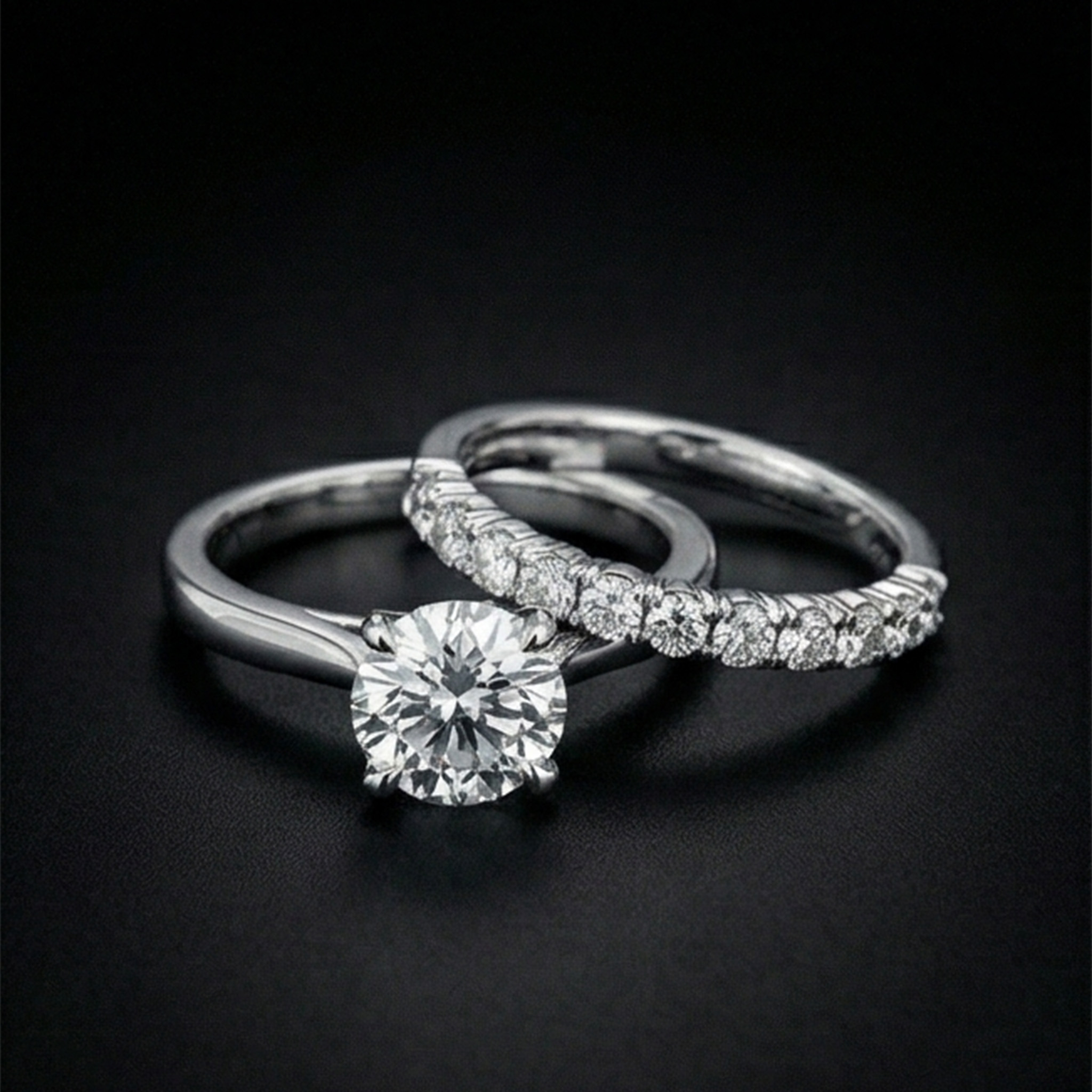 A perfectly matched bridal set including engagement ring and wedding band. Designed to sit flush together for eternal harmony.